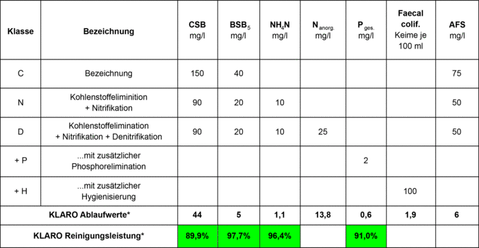 La tecnología KLARO logra lo que otros no pueden. Hoy, los valores alcanzados por KLARO son un 70% inferiores a los requeridos por ley. Estosupone seguridad para el futuro - incluso si los requisitos legales para las aguas residuales se vuelven más estrictos en unos años .